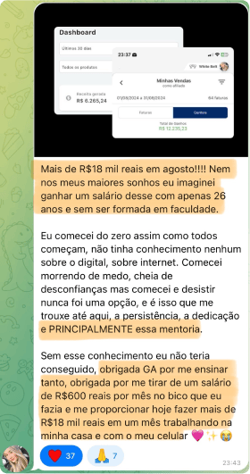 Foi isso que mudou minha visão. E agora estou aplicando exatamente esse método, com acompanhamento, estratégia e direcionamento.